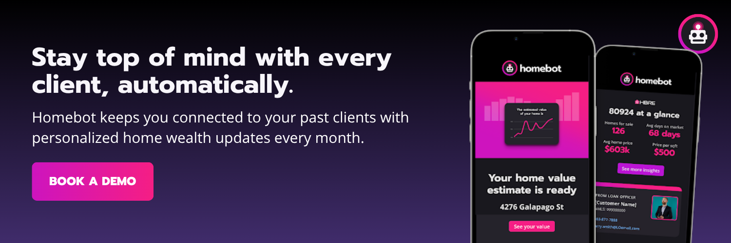 Getting found by AI is only half the equation. The other half is staying connected to your past clients long enough to earn the reviews, referrals, and re-engagement that make your GEO signal stronger over time. Homebot automates that work, delivering personalized home wealth insights to your clients every month under your brand, without any manual outreach on your part.