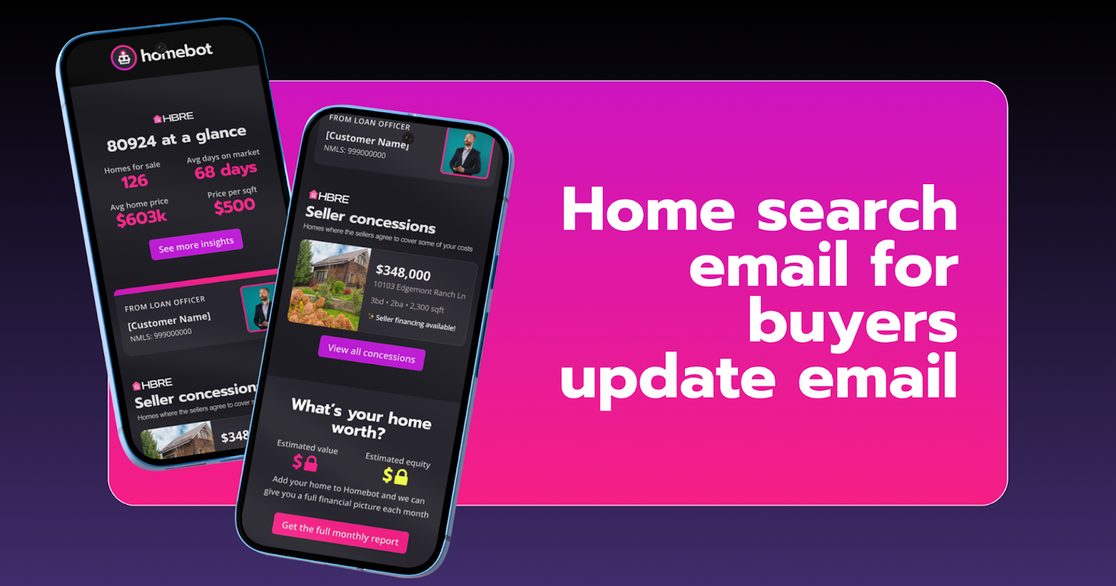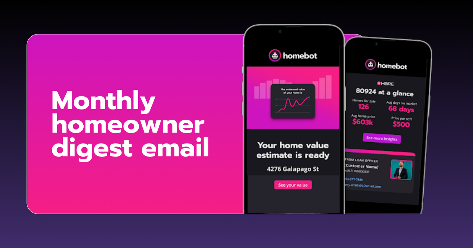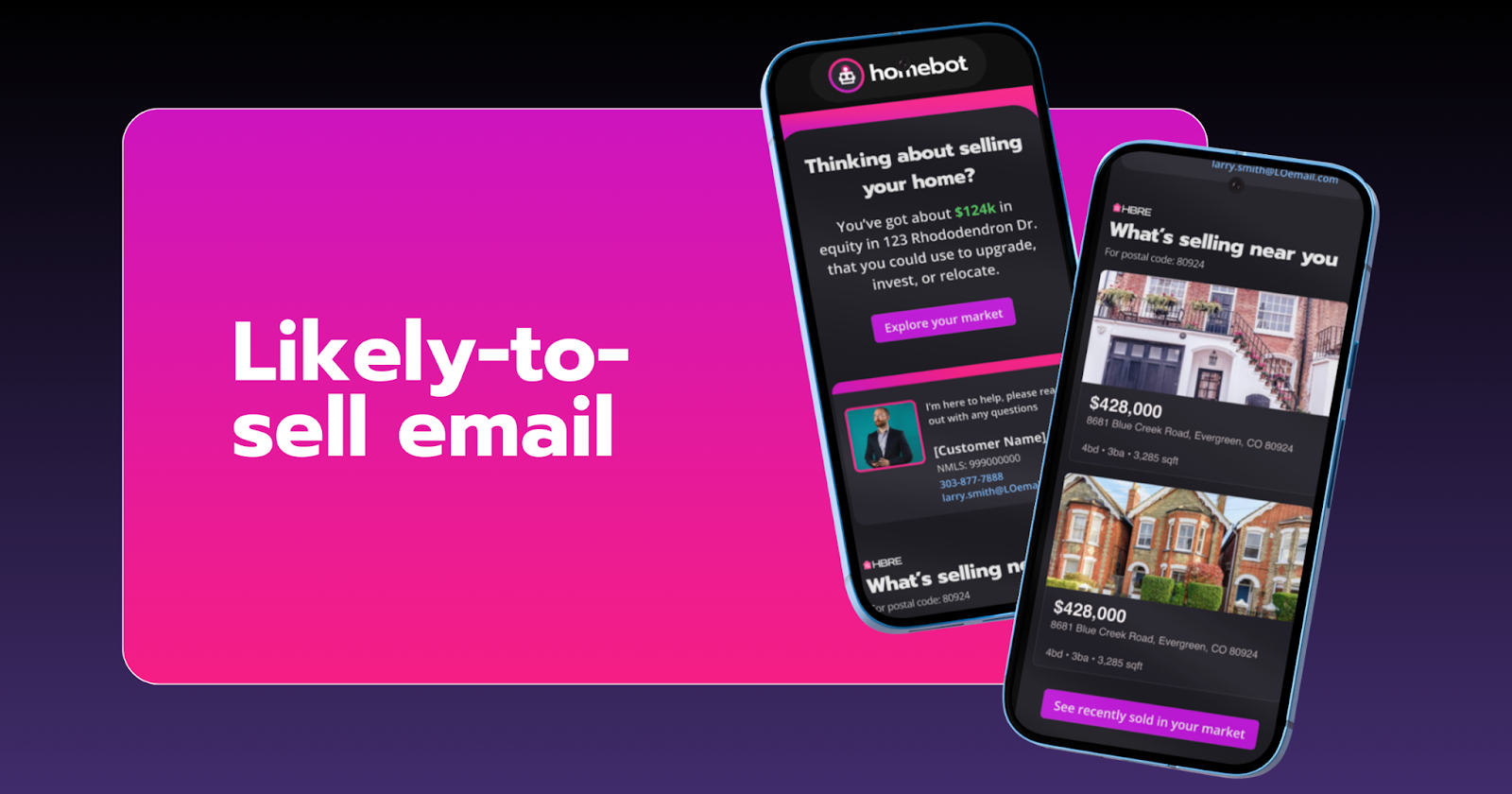 Homebot makes this easy. It sends personalized, data-driven emails to your database based on your clients' home search activity, equity position, and local market conditions. Each email is triggered by real behavior and customized for the recipient.