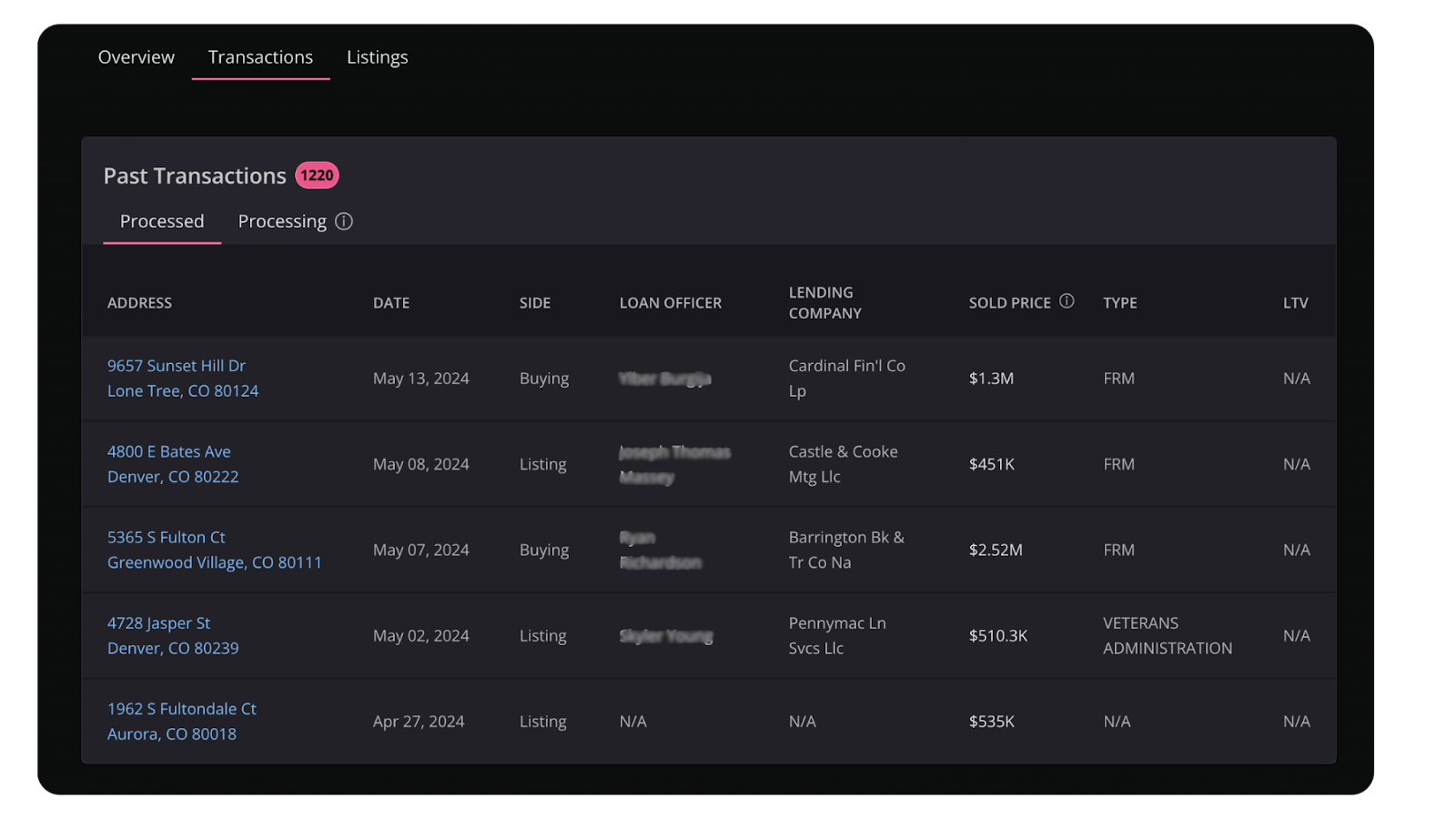 MLS transaction data. Public record shows exactly who's closing and how often.